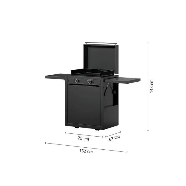 Urbanes E-Konzept: Perfekt für Stadtbalkone oder kompakte Außenbereiche. Dieses Set verbindet die 60 cm Elektro-Plancha mit einem passgenauen Wagen zu einer mobilen Einheit, die ganz ohne Gasflaschen auskommt.